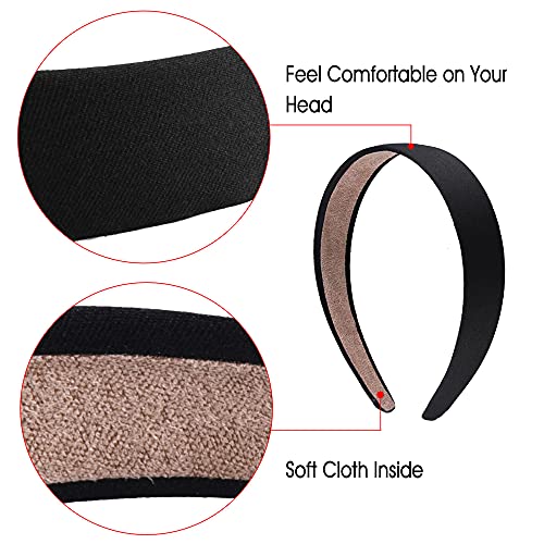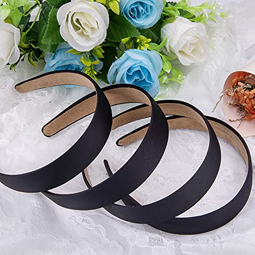 SIQUK 12 Pieces Satin Headbands 1 Inch Wide Non-slip Headband Satin Covered DIY Headband for Women and Girls, Black