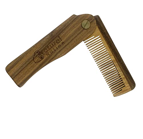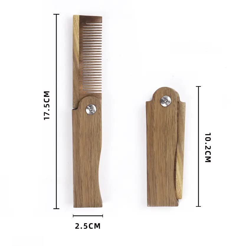 Folding Wooden Beard Brush/Hair Comb Stocking Filler Pocket Sized Durable Anti-Static Mens Eco Friendly Natural