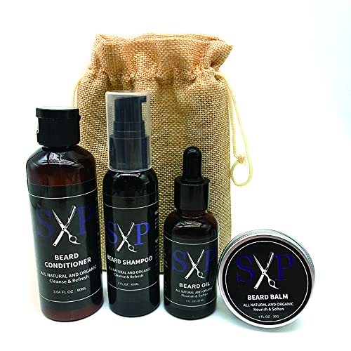 SP Beard Grooming Kit w/Beard Oil, Beard Balm, Beard Brush, Beard shampoo, Beard conditioner, Beard Comb, Beard Scissor,Linen Storage Bag, Beard Growth Care Gifts for Men