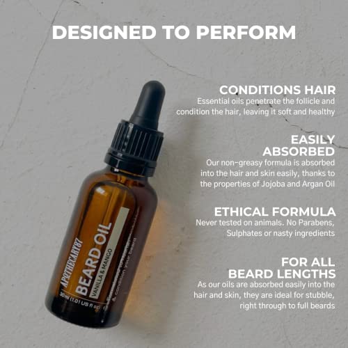 Apothecary 87 Beard Oil | Vanilla & Mango Fragrance | Premium Formulation With Plant Extracts | Beard Conditioner, Nourishes, Softens and Moisturises, Reduces Irritation | 30ml