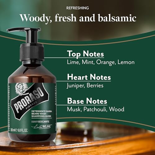 Proraso Beard Wash, 200ml, Refreshing Scented Beard Shampoo Softens, Conditions, and Gently Removes Impurities, Made in Italy