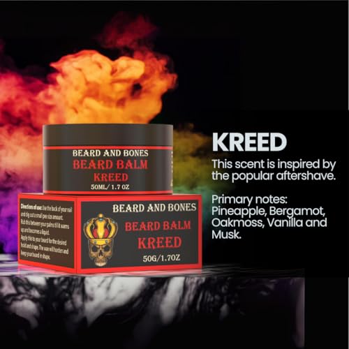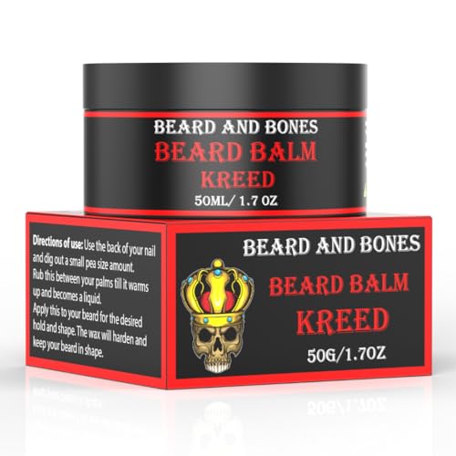 Beard and Bones – 50ml Beard Balm For Men | Shea Butter, Jojoba Oil, Almond Oil | Nourishing Beard Conditioner & Moisturiser for Coarse Hair | Choice of 6 Scents (Kreed)