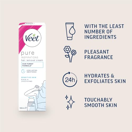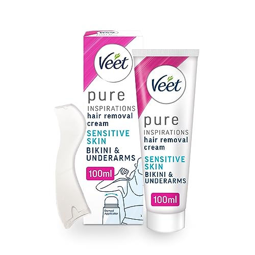 Veet Pure Hair Removal Cream, 100ml, Bodycurv Domed Applicator, Sensitive Hair Removal Cream, Bikini Hair Removal, Underarm Hair Removal, Hydrates and Exfoliates Skin, Hair Removal