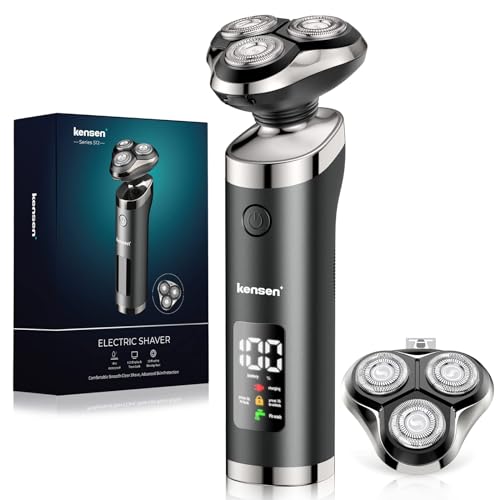 Electric Razor for Men, KENSEN Electric Shavers for Men Waterproof, Wet and Dry Rechargeable Rotary Mens Electric Shavers, Shavers for Men LED Display Cordless Mens Shaver