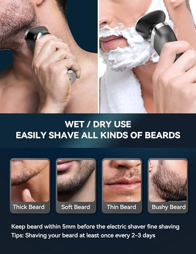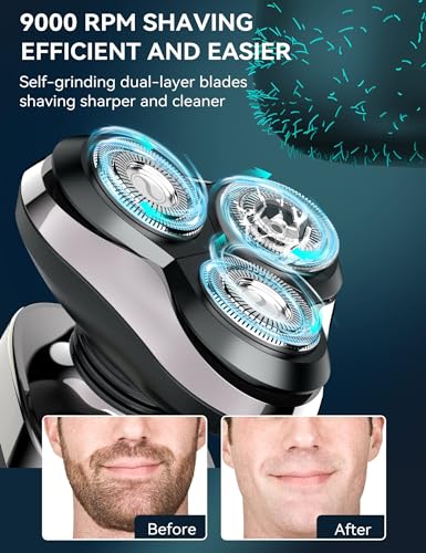 【Electric Razor for Men】Self-grinding dual-layer blades trimming beards sharper and cleaner. Easily shave all kinds of beards, such as Thick Beard, Soft Beard, Thin Beard, and Bushy Beard. Electric razor for men offer you a smooth, silky beard and the best look in little minutes for any vacation or romantic getaway.