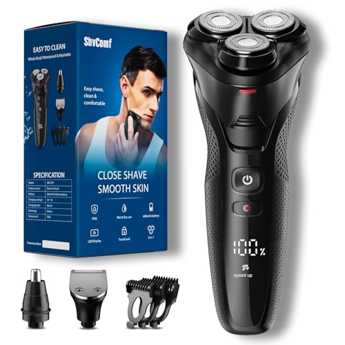Electric Razor for Men, ShvComf Electric Shaver, Waterproof Wet Dry Cordless Rechargeable Razor for Men Face, Adjustable Speeds, with Nose Hair Trimmer, Sideburns Trimmer