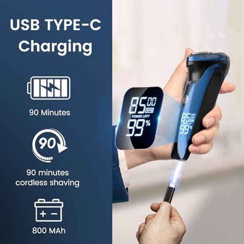 ⏰【USB-C CHARGE & DURABLE USAGE】You can take the razor anytime you want with quick USB and Type-C charging. No need to worry about the shaver running out of power with your computer, power bank, or car charger. Charge up in just 1.5 hours for a whopping 90 minutes of shaving.
