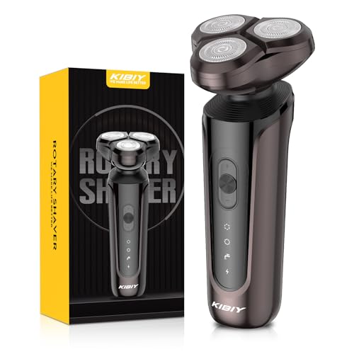 Kibiy Electric Razor for Men, Electric Shavers Men Cordless Rechargeable Rotary Shaver, IPX7 Waterproof Mens Electric Razor Wet & Dry Use 90min Shaving Time Magnetic Shaving Head and 2 Shaving Modes