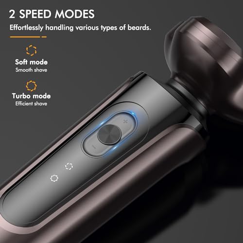 【2 Shaving Modes】With 2 Speed Modes, razors for men electric caters to different beard types and preferences. The Soft mode operates at 3200 RPM, delivering a gentle and smooth shave for sensitive skin. The Turbo mode ramps up the speed to 3600 RPM, providing an efficient and thorough shave for dense or longer beards.