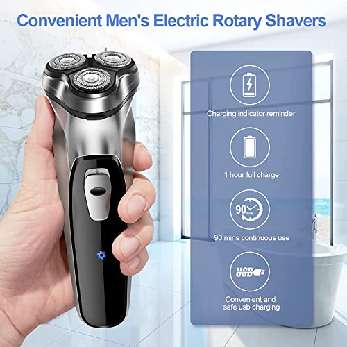 Fast charge 5W powerful shaver:Electric shaver is equipped with a professional powerful motor, which works efficiently and saves time. It is equipped with a 60 minute fast charging USB cable, which can provide 90 minutes of working time, which is very suitable for thick beards men