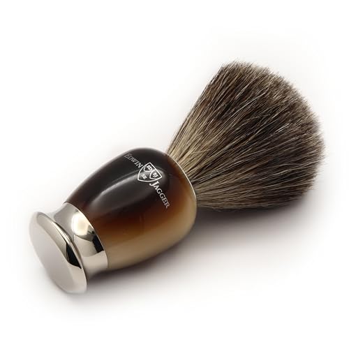 Edwin Jagger 81SB582AMZ Classic Pure Badger Exfoliating Shaving Brush for Shaving Cream or Shaving Soap for Men and Women (Horn)