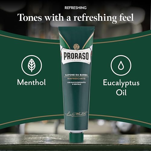 Proraso Shaving Cream Tube, 150ml, Refreshing and Toning Shaving Cream for Men with Eucalyptus Oil and Menthol, Made in Italy, Green
