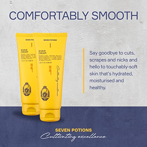 Seven Potions Lathering Shaving Cream for Men – Smooth, Irritation-free Shave – Soothing, Hydrating, Moisturising Shave Soap – Natural, Vegan, Cruelty-Free (120ml)