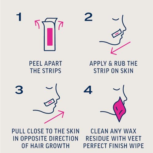 Veet Pure Cold Wax Strips, Face, Sensitive Skin, 40 Strips, 4 Finish Wipes, Hair Removal, Removes Hair From Root, 28 Days Smoothness, Hypoallergenic Formula (Packaging may vary)