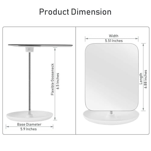 LFOYOU Table Vanity Mirror with Stand – Makeup Mirror for Desk – Adjustable Flexible Gooseneck, 360°Rotation Folding Portable Bathroom Shaving Cosmetic Mirror Square